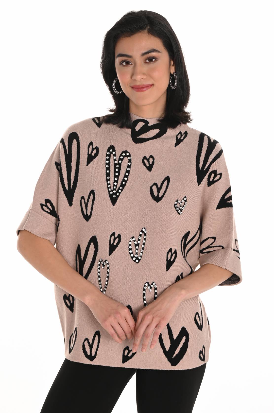 MOCK NECK SHORT SLEEVE HEART SWEATER