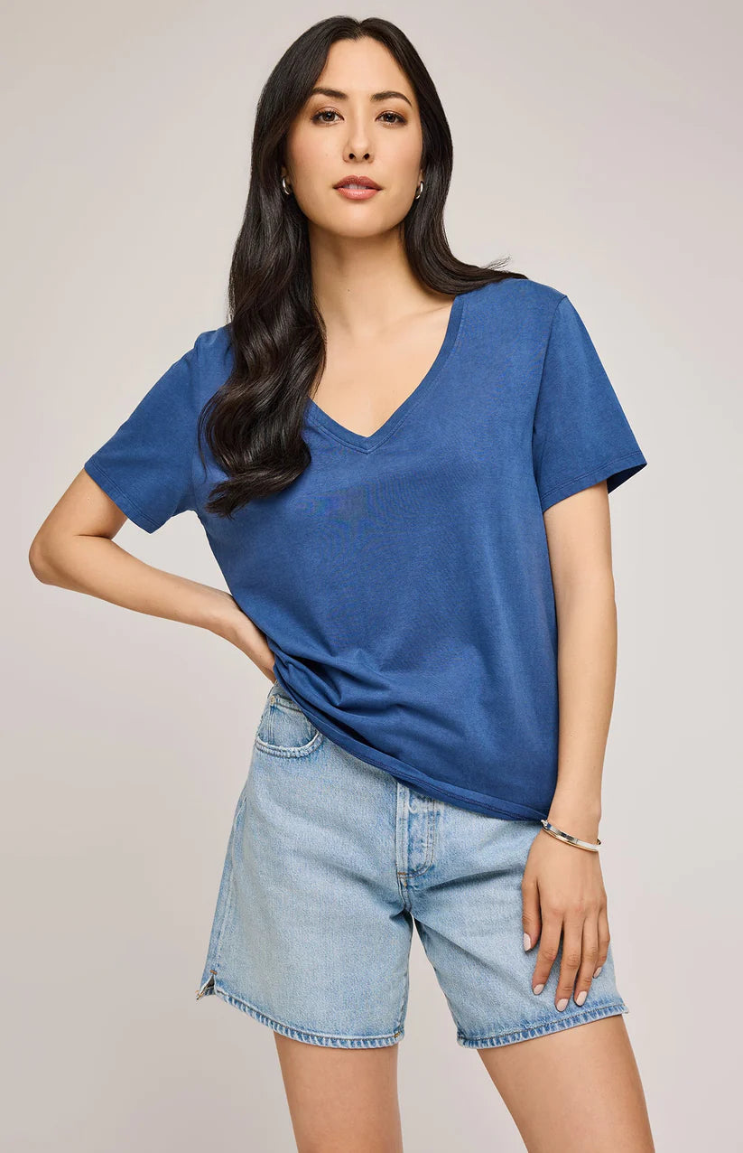 The Jennifer t-shirt is part of our Icon Series, a collection of classic silhouettes made exceptional by the women who wear them. It's made of a cotton jersey fabric that has been garment dyed for a perfectly lived-in look. Features include a v -neckline and relaxed fit.
