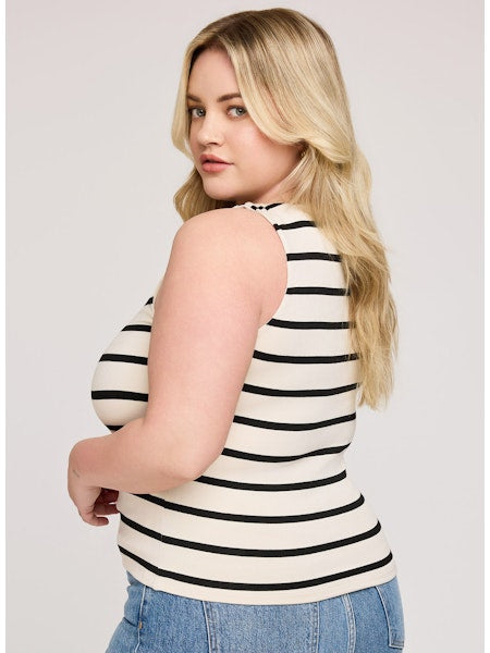 The Cyrus tank is made of a soft rayon jersey fabric and fully lined for extra coverage. Features include a boat neckline and slightly cropped length for easy layering.