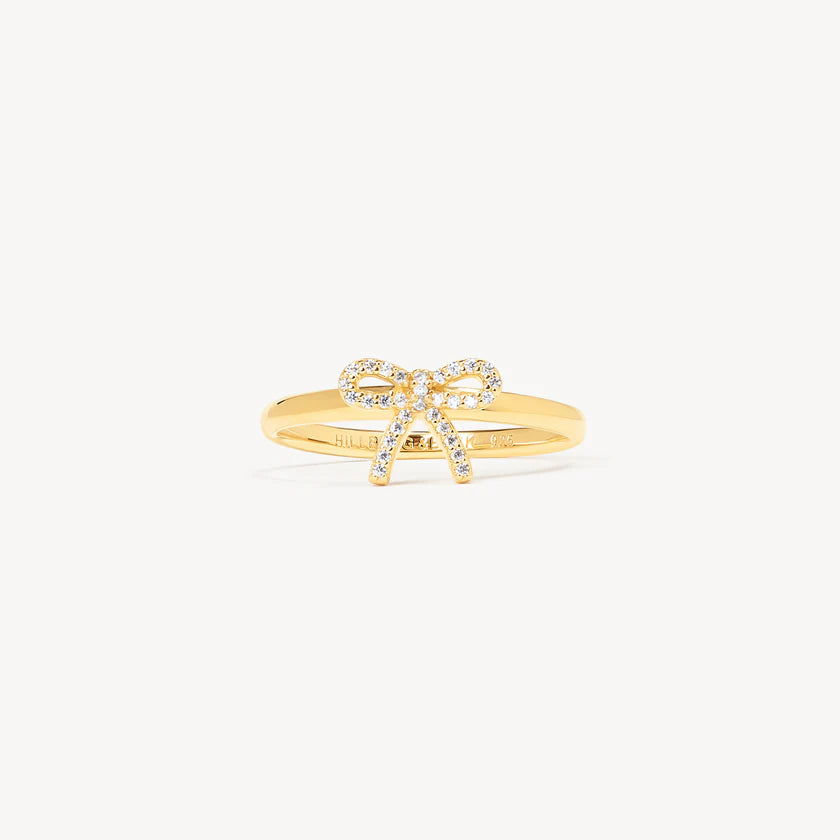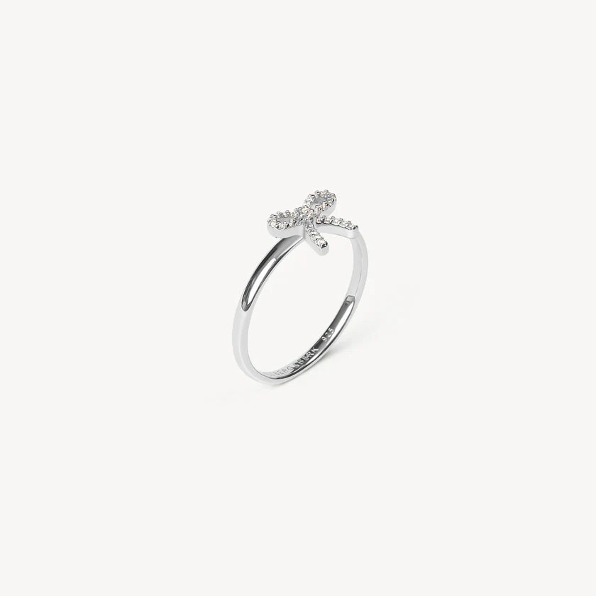 The Baby Bow Ring has a sweet sophistication. Available in silver and gold, this delicate ring features a fixed bow adorned with white crystal details that offer a subtle yet alluring sparkle. Its minimalist band makes it perfect for stacking or wearing alone. If you’re looking for a cute, playful touch—put a Baby Bow Ring on it.