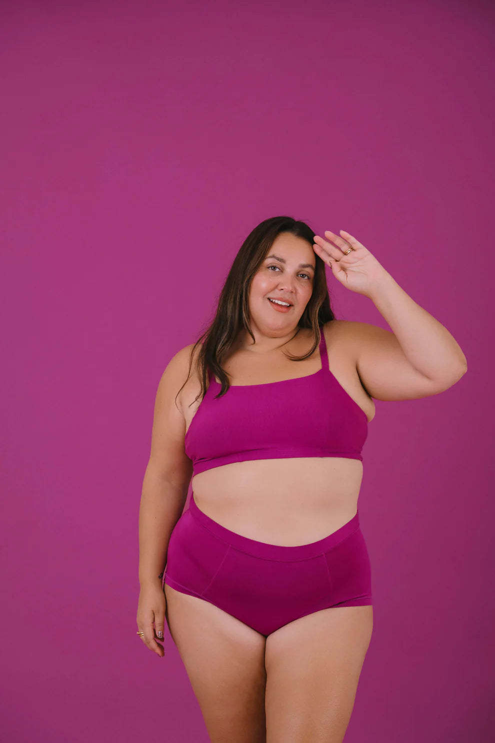 Our Brief delivers next-level comfort whether you’re lounging or on the go. With our highest rise, wide-cuffed waistband, and supportive front panel, this cut feels like a hug and minimizes pressure on the lower abdomen. The modest-cut leg is elastic-free to keep you moving freely—with just a peak of cheek.